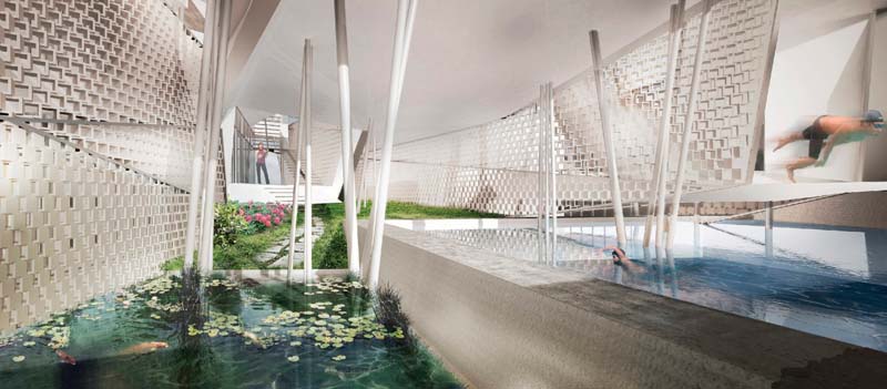 Designed to be fully present in the environment of Jin Hai Lake, the Ambient House responds to each of its physical and atmospheric surroundings. Conceived as a system with multiple layers, the envelope of the house can be operated and transformed to provide the most desirable and temperate living conditions.