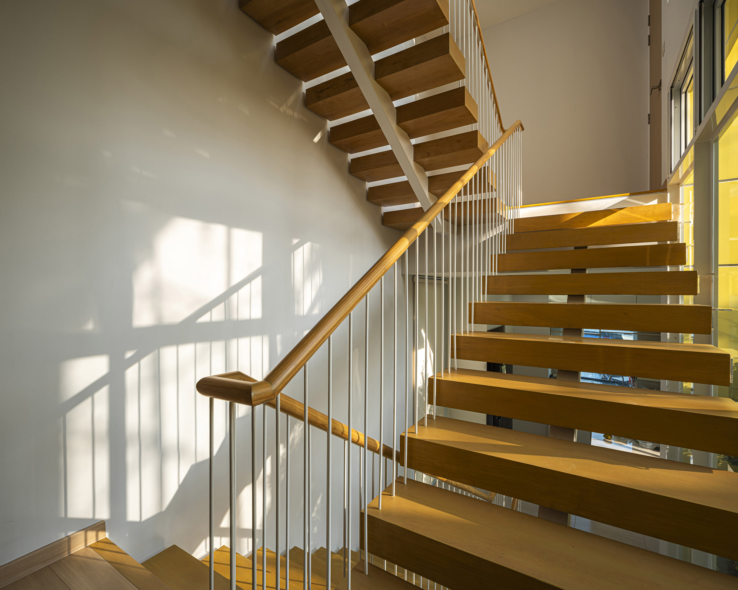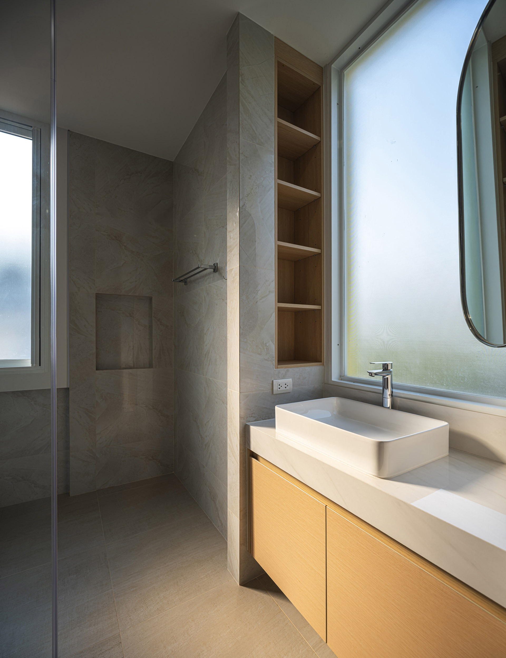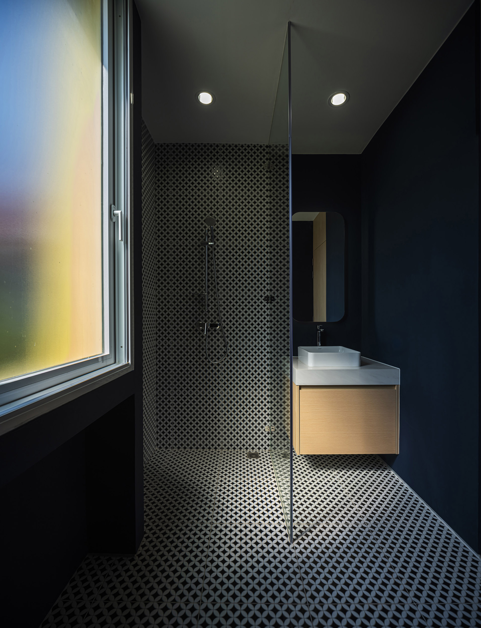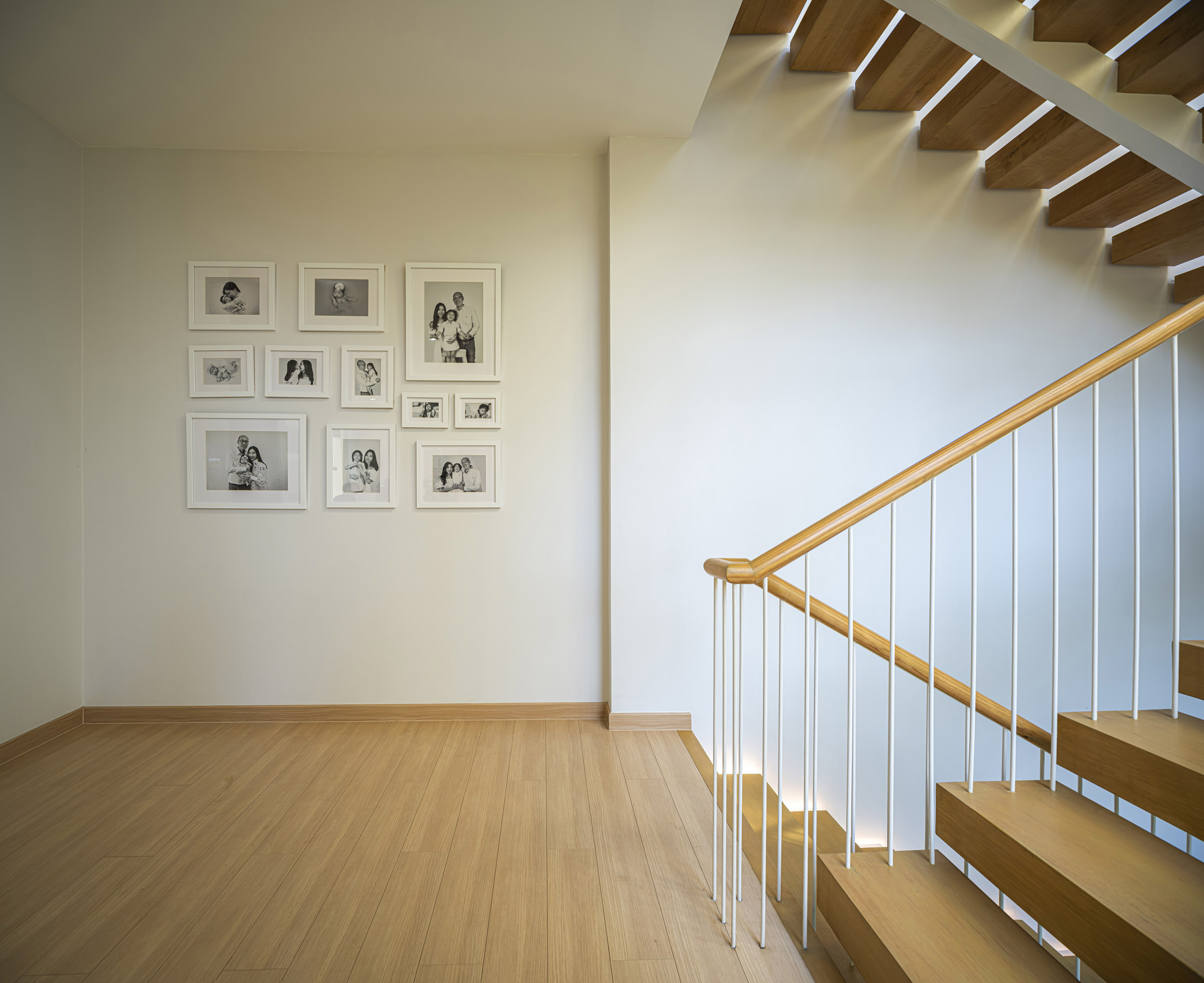The house is built on an unusual subdivision of 12m X 7.50 m lot size in a small alley of Bangkok dense urban neighborhood. The north end of the property is the only access to the public alley way. To the east and the south of the property, lies the garden of the neighboring homes of the same extended family. The Inward house take advantage of this unique site by re-introducing a “courtyard” typology. To maximize the square footage of the usable space, the house is built right on the lot line and wrapped around a carved-out open courtyard in the interior. The architecture acts as a buffer between the bustling City and the quiet refuge of the interior. Each interior space facing inwardly toward the courtyard. The house is also taking advantage of the neighboring garden space for natural ventilation. The porous deep grey brick wall around the courtyard induces airflow as a natural cooling and ventilating while providing privacy for the residence.