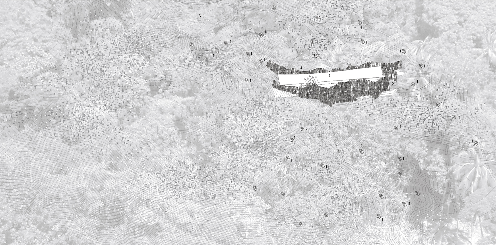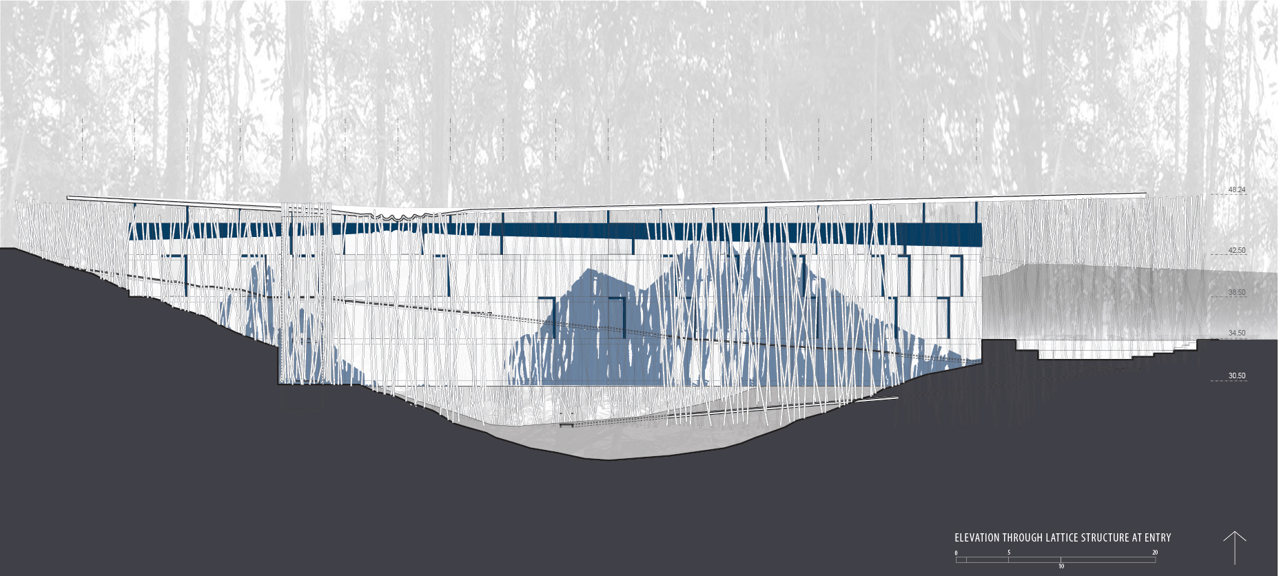 While the tragedy of the tsunami defies memorialization, commemorative practice offers solace in the face of loss, succor amidst chaos. We intentionally propose a gentle recasting of memorial conventions: discrete sites of contemplation modestly submit to +the power of the land itself . A path to intimately scaled outdoor rooms, randomly dispersed in the densely forested topography, leads circuitously to the proposed educational center/museum building. In contrast to the magnitude and monumentality of the catastrophe, the proposal seeks a humble state of recognition. Through direct empirical discovery of the self in nature, the path reveals both the horrors of natural catastrophe and the immeasurable humanitarian effort in the aftermath. Architecture frames nature and human nature in its dialectic of destruction and renewal. The design intends to embrace the nature of existing site conditions both at programmatic and physical level. Programmatically, the design proposes new development of park trails as major elements of the memorial. These trails are provided as public network system within the National Park for its access and use as recreational site as well as alternative route connecting the highway to the Andaman Sea. Presently, the site is rarely used by general public because of the lack of generous park trails. Along the path, the landscape conjures up the experience of moving through the verdant foliage, among rubber plantations and bamboo groves carefully cultivated as climatic screens, and visual foils to the recitation rooms. These rooms are constructed of translucent concrete embedded with matrices of optical fibers. These pixilated light patterns create a text recording the date and time of the catastrophe in thirty-eight languages spoken by people whose lives were affected by this disaster and who joined together in the humanitarian effort. Together they form a path that connects the land to the Andaman Sea.